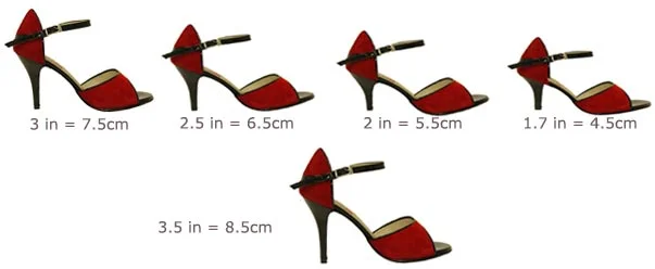 - Classic cuban heel is 1.5 in or 3.5 cm